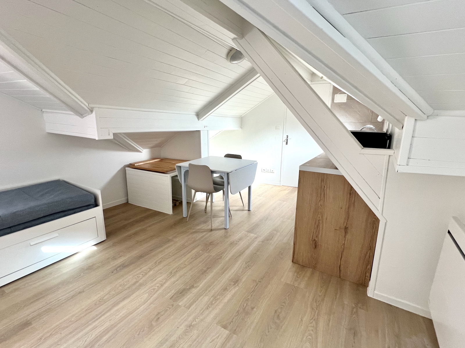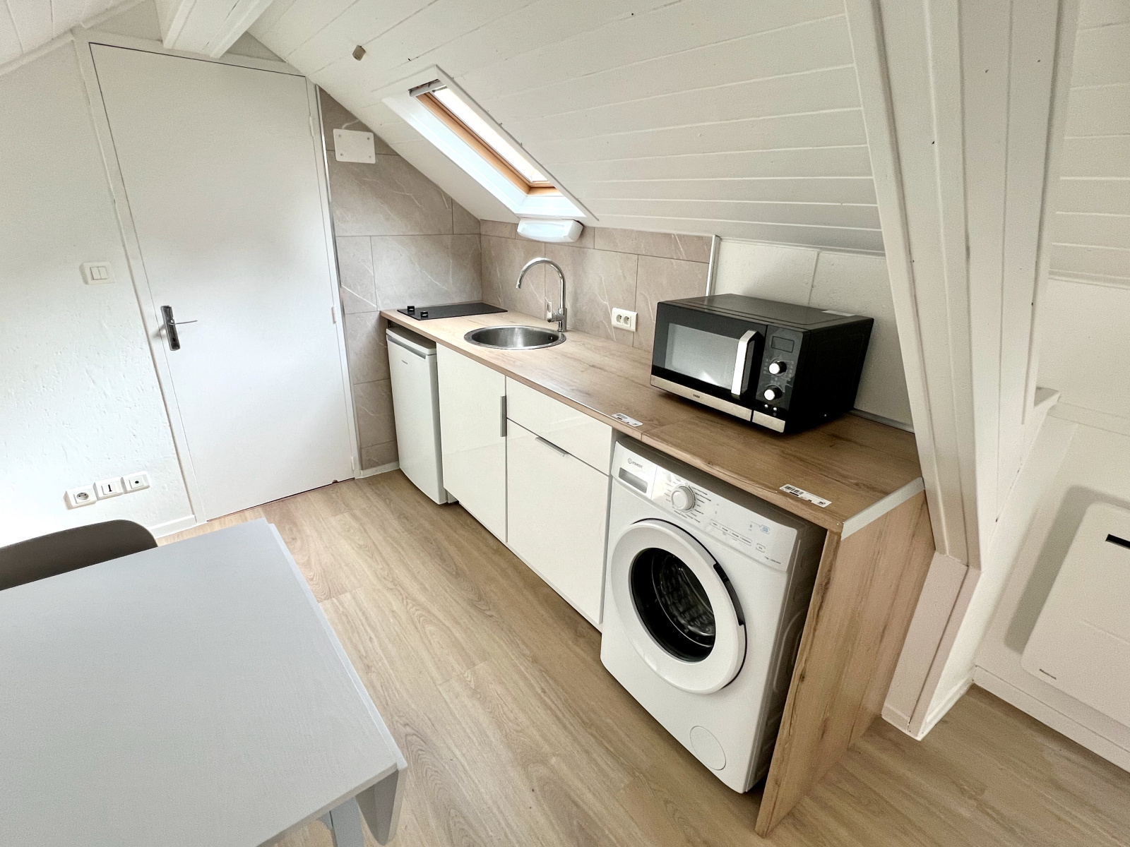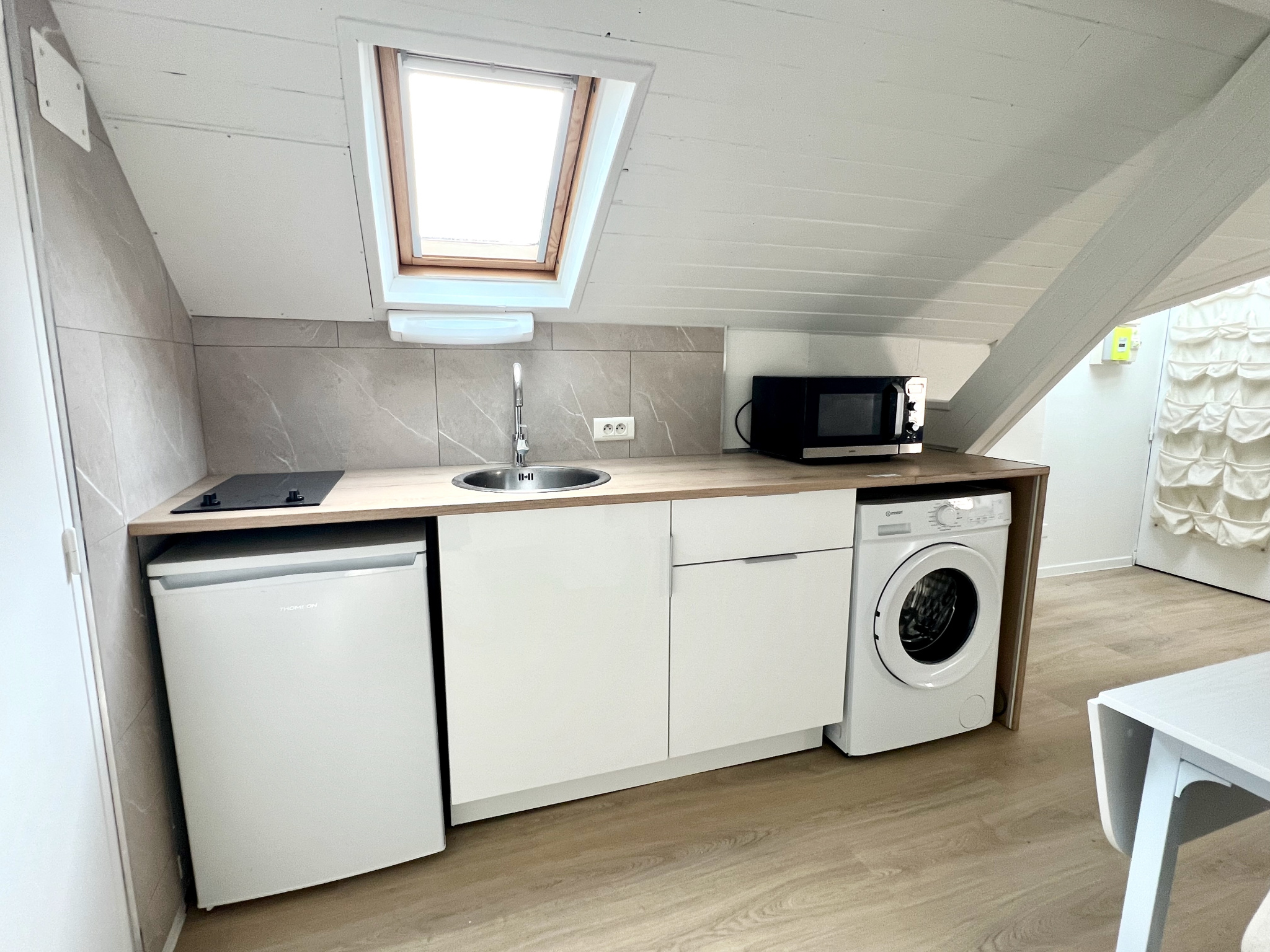 Pièce de vie avec kitchenette équipée - Salle de bain avec toilettes.