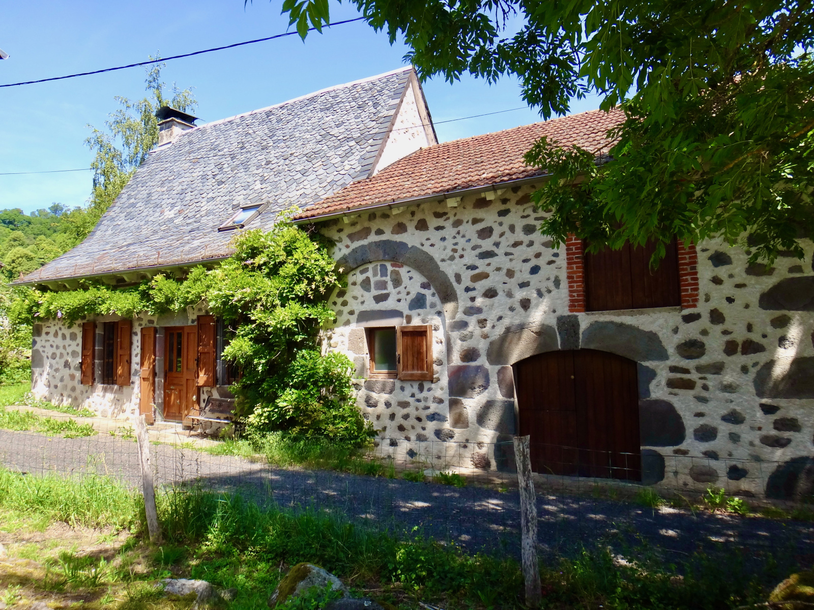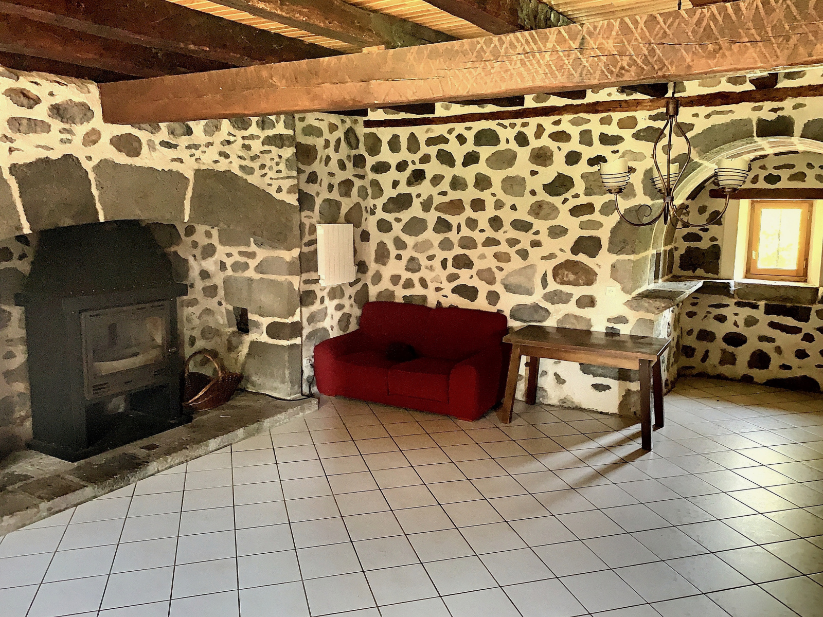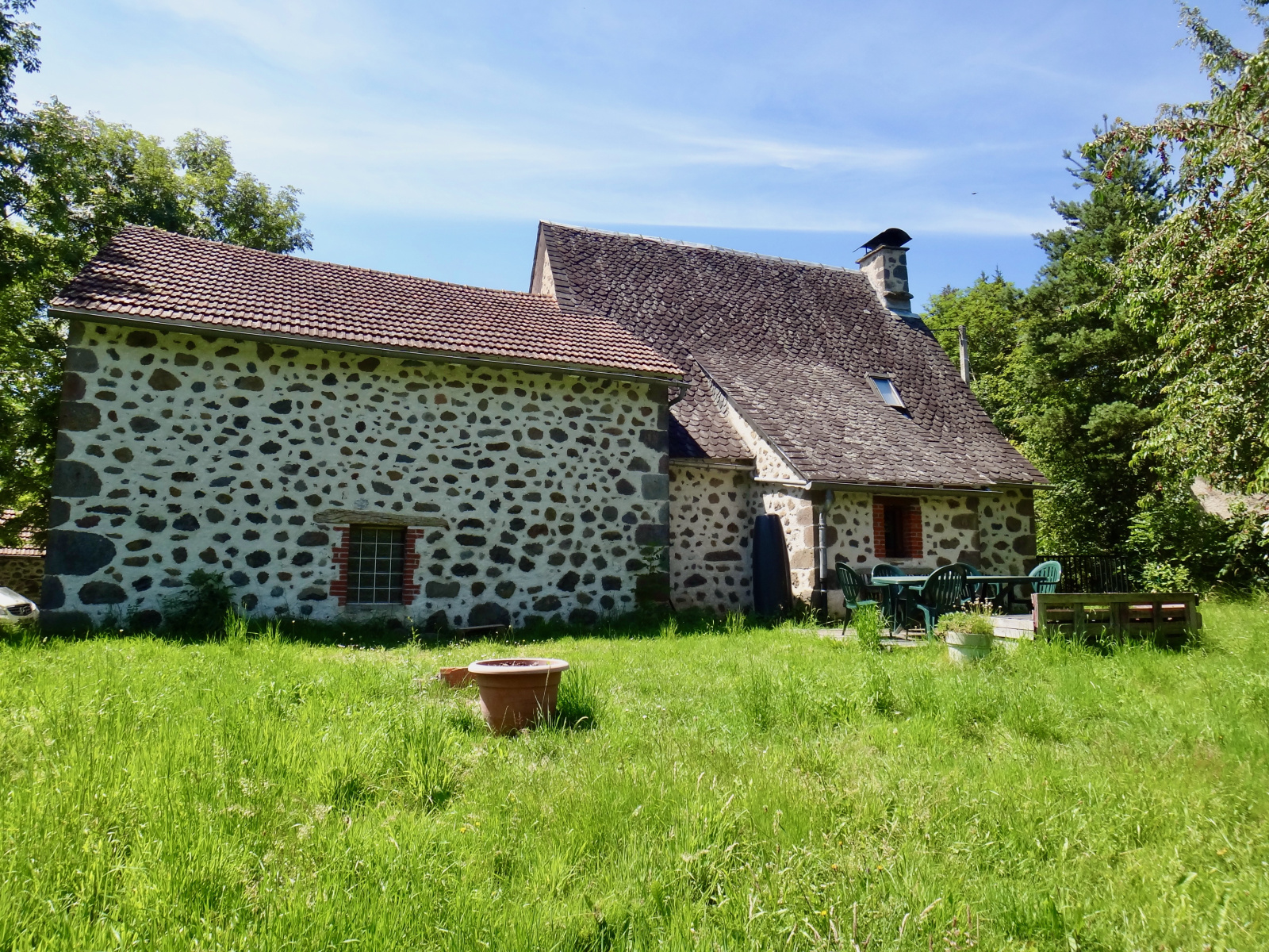 A 15 minutes au nord d'Aurillac - Dans un environnement calme - Maison de caractère en pierre de 83,50 m² habitables sur deux niveaux, avec grange attenante, sur un terrain de 746,00 m² : Séjour avec cantou - Cuisine équipée ouverte sur le séjour - 2 chambres - Salle d'eau - Toilettes - Buanderie. Dépendance sur deux niveaux avec espaces de stockage. Chauffage individuel électrique et poêle à bois. Terrasse aménagée sur un terrain clos et arboré.