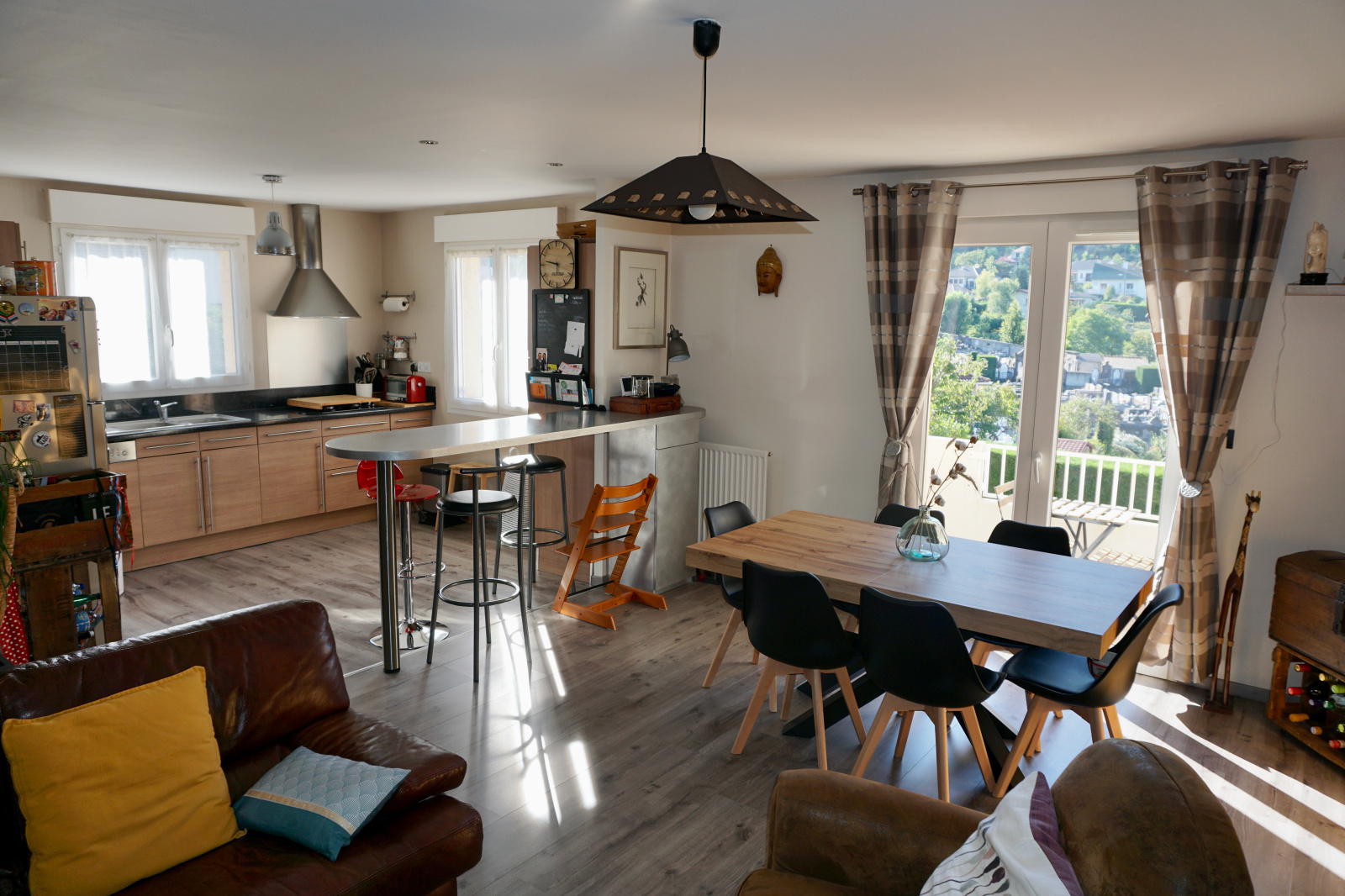ROYAT - Sur un terrain d'une superficie de 284,00 m² - Maison en parfait état d'une surface habitable de 110,60 m², sur deux niveaux: Entrée - Séjour double donnant sur balcon - Cuisine équipée US - 3 belles chambres dont une avec placard - Salle de bain - Salle d'eau - Toilettes - Dressing - Buanderie - Garage - Terrasse avec piscine hors-sol donnant sur la forêt - Cour pouvant accueillir deux véhicules. Chauffage gaz. Poêle à bois. Environnement calme et résidentiel. Vue panoramique.